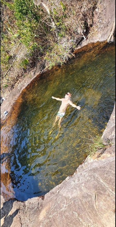 Por fim, chegamos à Cachoeira Ofurô, onde a água cristalina e as formações rochosas criam um ambiente natural semelhante a um ofurô, proporcionando momentos de relaxamento e contemplação. É o local ideal para descansar e aproveitar o ambiente calmo e acolhedor.